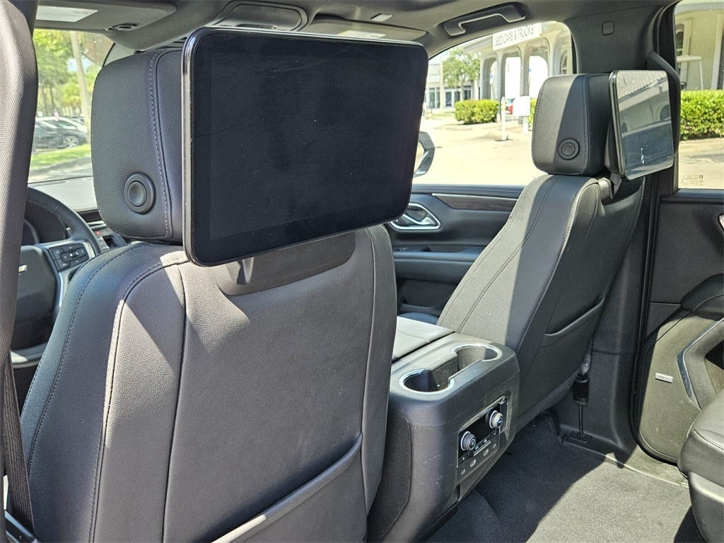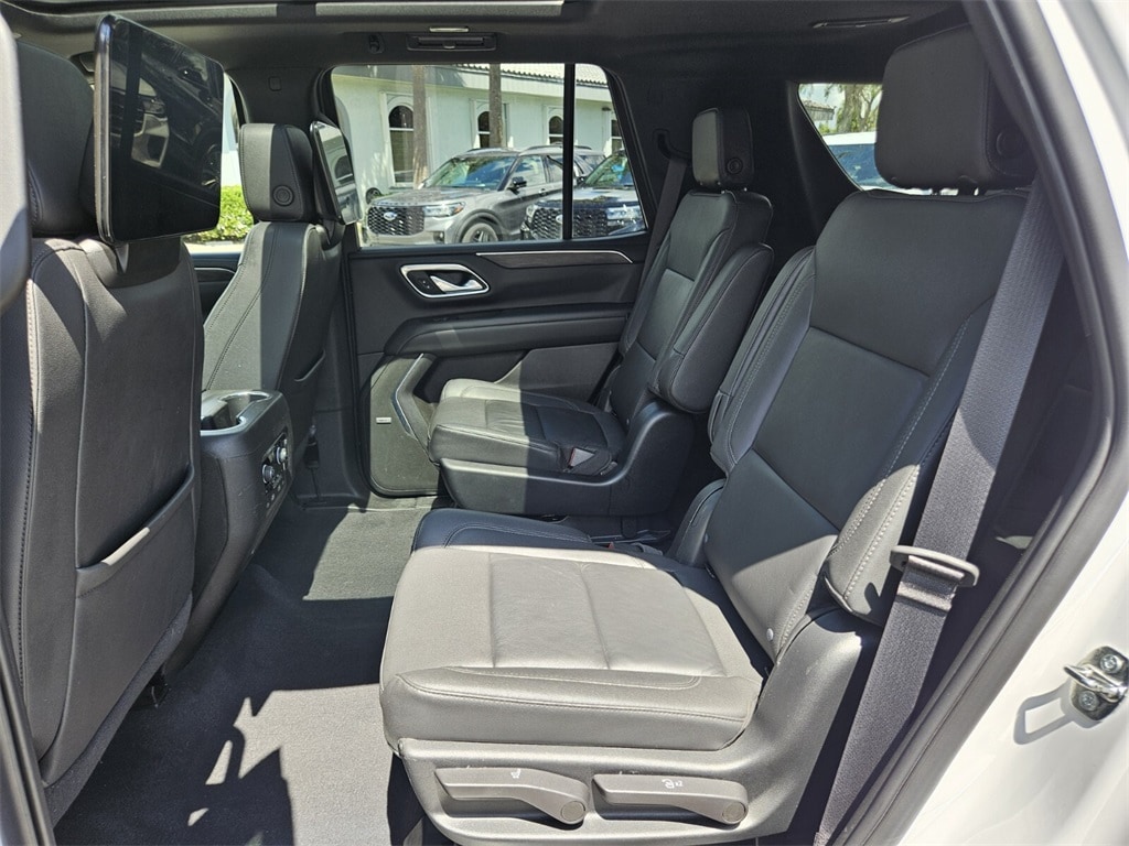 4WD, Jet Black Leather, Original Low Miles >>, Backup Camera >>, Non-Smoker Unit >>, Inspected and Serviced by our Certified Technicians >>, Service Records Available >>, Leather Seats >>, 3 Rows of Seating >>, DVD Entertainment System >>, 1st & 2nd Row Color-Keyed Carpeted Floor Mats, 2-Speed Active Electronic AutoTrac Transfer Case, 2nd Row Pwr Release 60/40 Split-Folding Bench Seat, 3rd Row 60/40 Power-Folding Split-Bench Seat, Advanced Trailering Package, Alloy wheels, Auto-Dimming Inside Rear-View Mirror, Bose 9-Speaker Stereo Audio System Feature, Bright Front & Rear Door Sill Plates, Color-Keyed Carpeting Floor Covering, Driver & Front Outboard Passenger Airbags, Driver Alert Package, Dual-Pane Power Panoramic Sunroof, Enhanced Driver Information Center, Extra Capacity Cooling System, Floor Console w/Storage Area, Hands-Free Rear Power Programmable Liftgate, HD Surround Vision, Heated 2nd Row Outboard Seats, Heated door mirrors, Heated Steering Wheel, Hitch Guidance w/Hitch View, Infotainment Display, Integrated Trailer Brake Controller, Lane Change Alert w/Side Blind Zone Alert, LED Daytime Running Lamps, LT Signature Package, Luxury Package, Max Trailering Package, Memory Settings, Memory Settings for Driver, Navigation System, Outside Heated Power-Adjustable Mirrors, Panic alarm, Power Liftgate, Power Tilt & Telescopic Steering Column, Preferred Equipment Group 1LT, Rear Cross Traffic Alert, Rear Pedestrian Alert, Remote Start, Security system, SiriusXM Radio w/360L, Smart Trailer Integration Indicator, Speed control, Universal Home Remote, Wheels: 22" Multi-Spoke Gloss Black (LPO) (SRV), Wheels: 22" x 9" Steel Interim (LPO), Wireless Charging, Wrapped Steering Wheel.